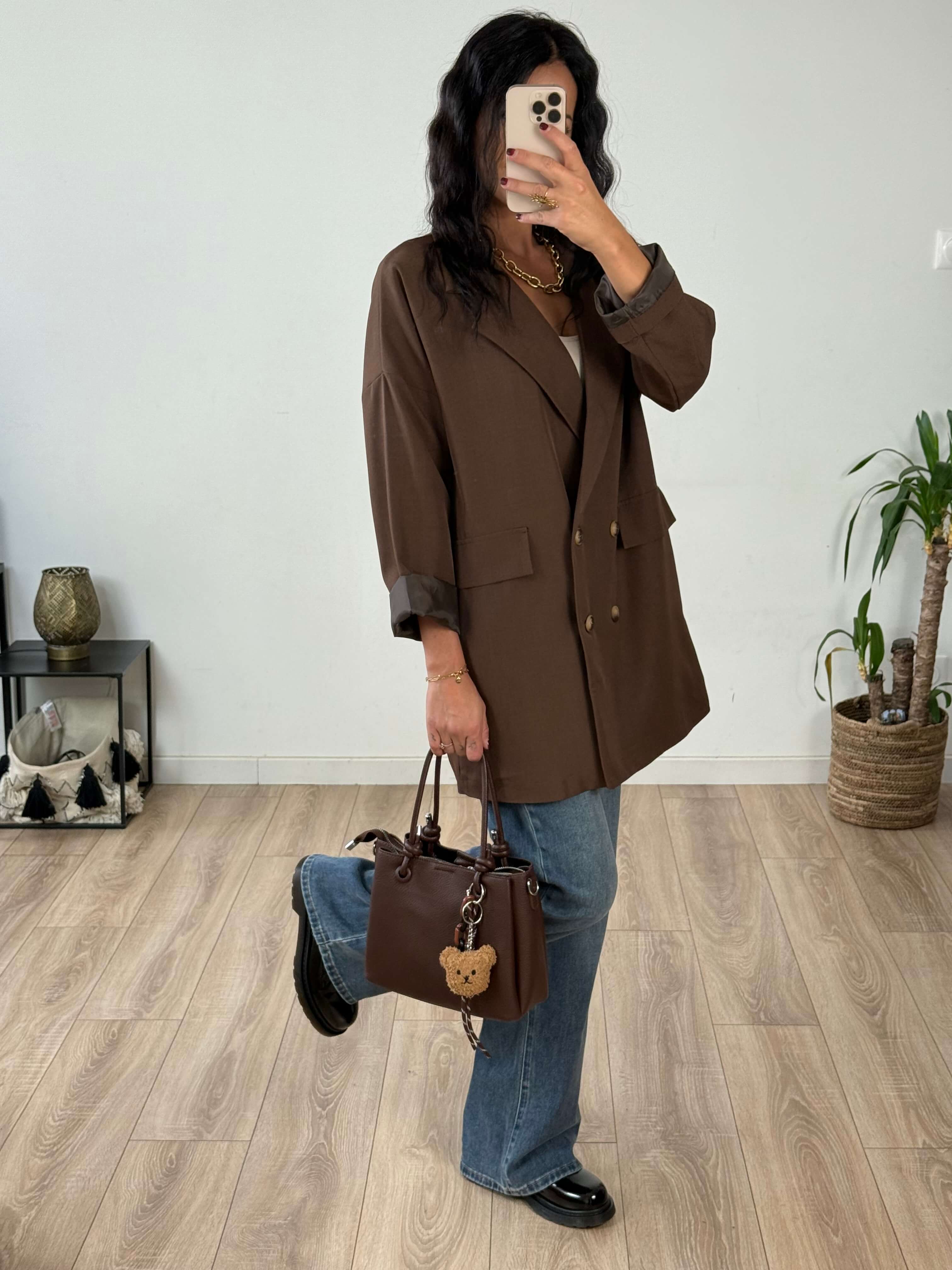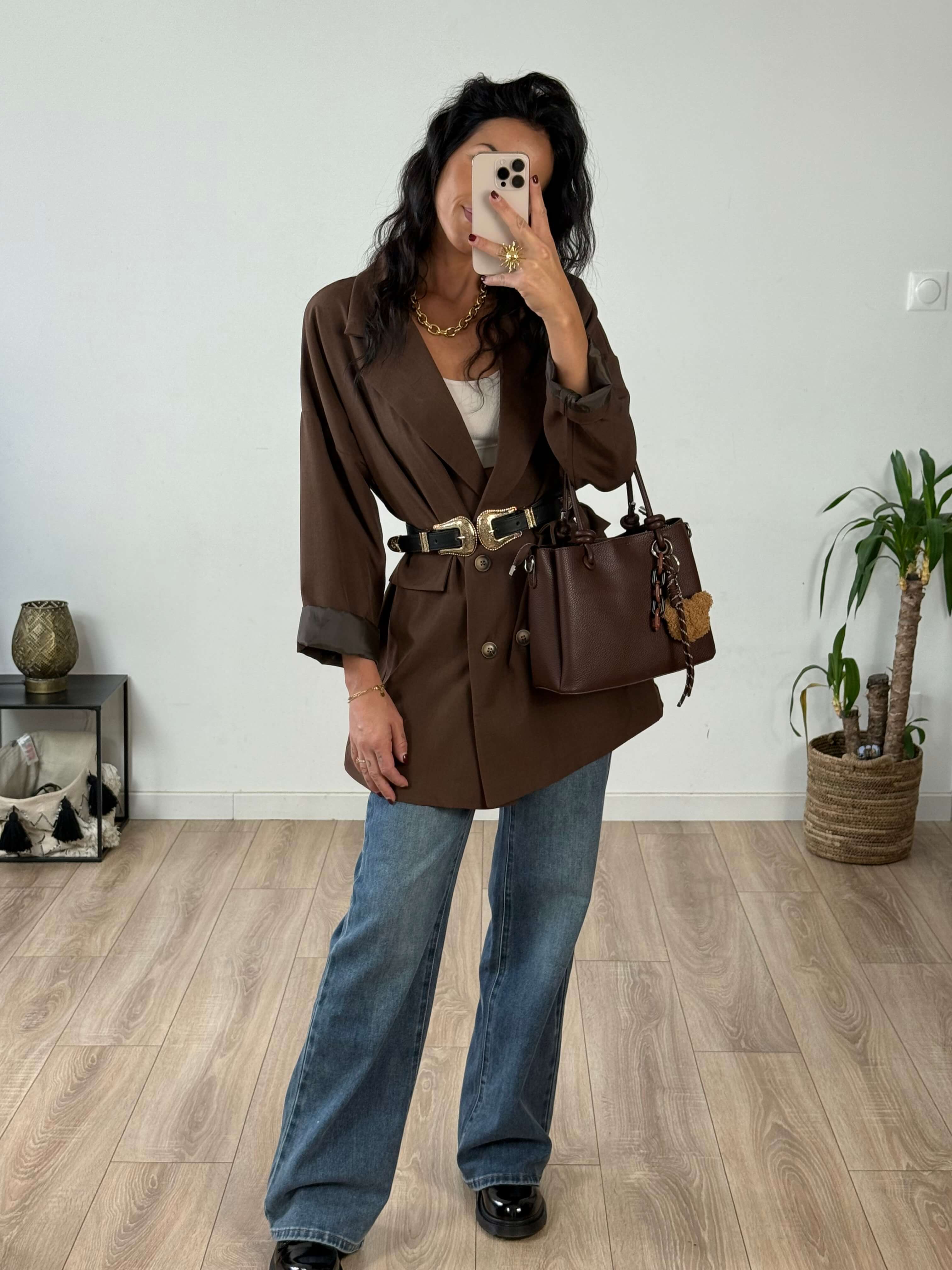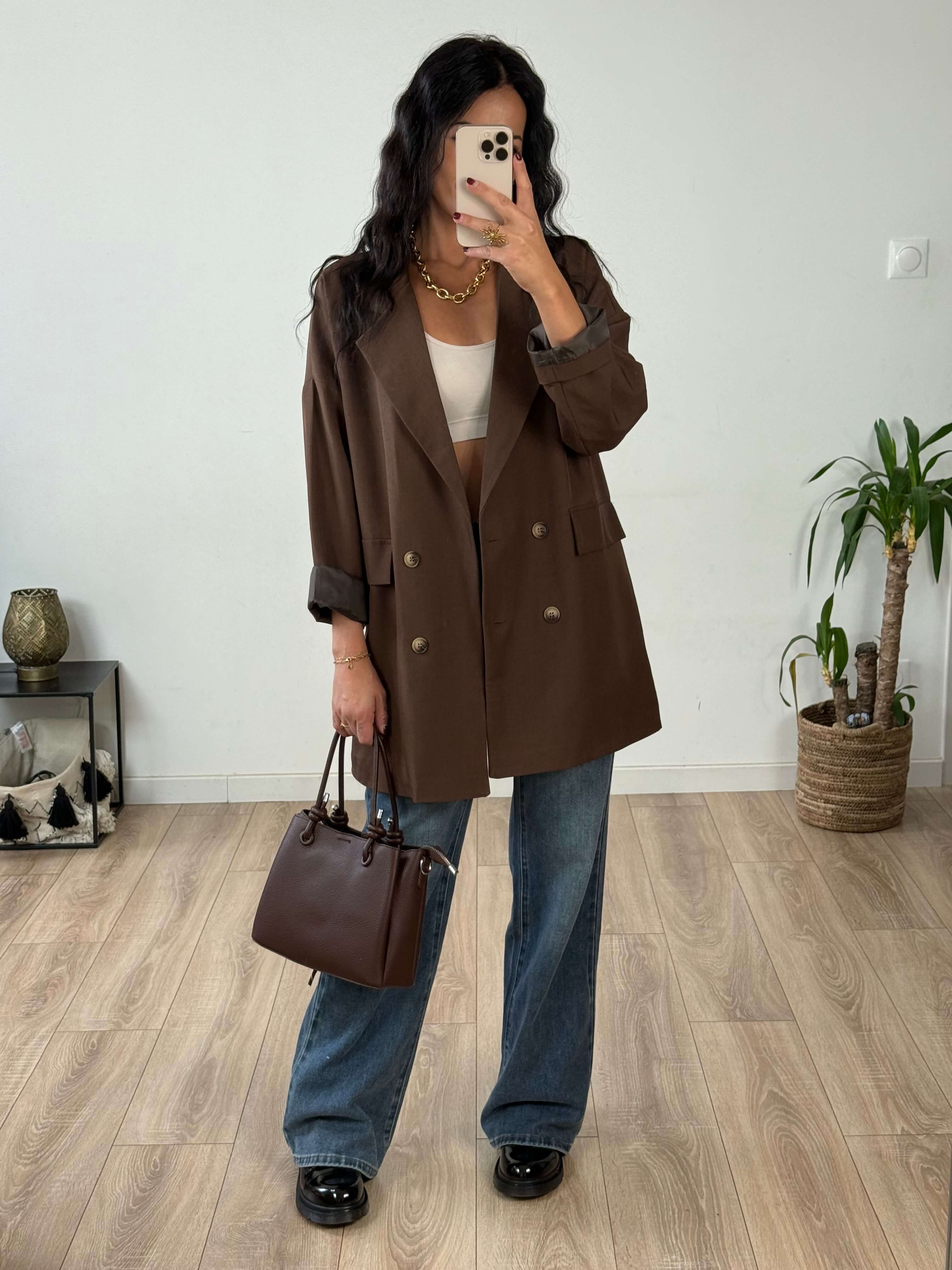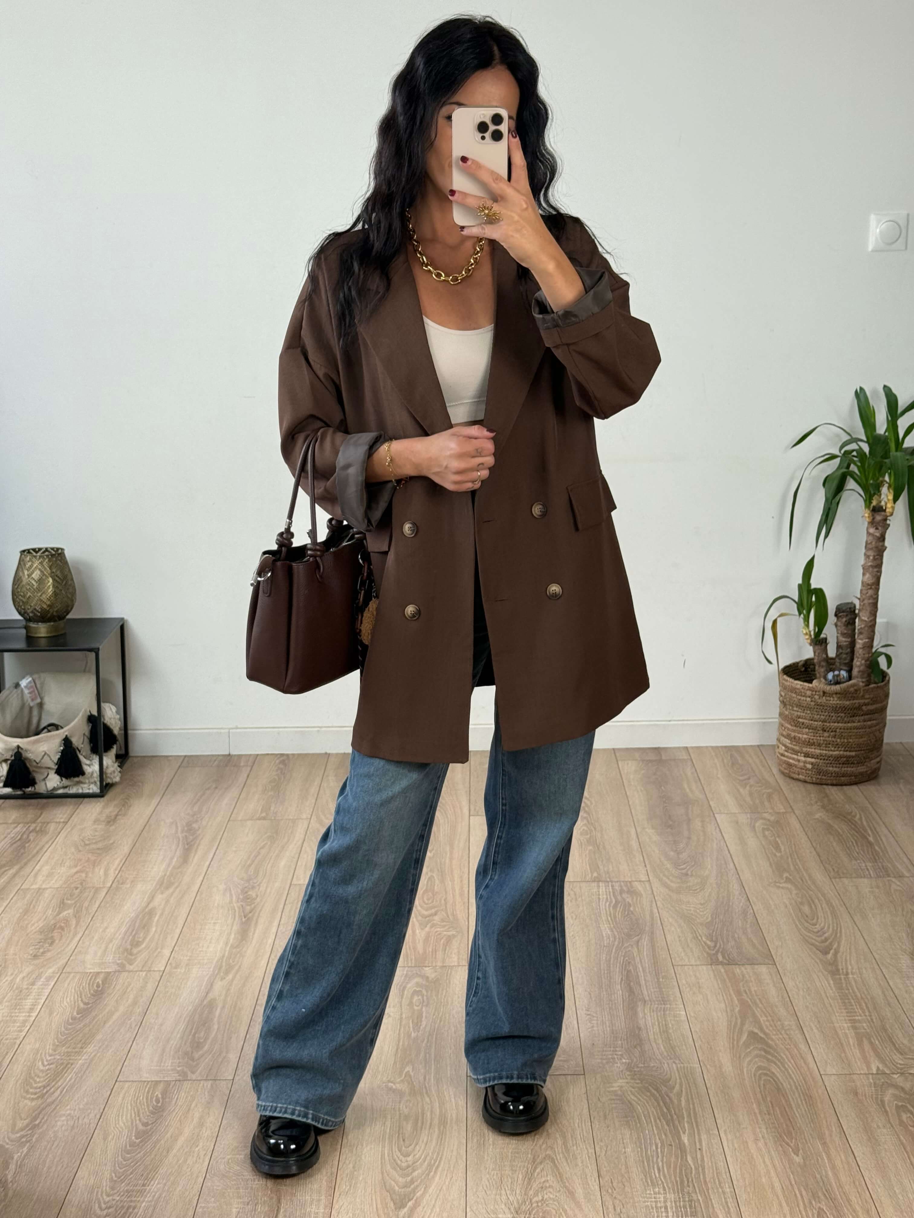 Ce blazer oversize sans épaulettes allie confort et style avec une coupe ample et fluide. Sa matière douce et légèrement extensible en fait une pièce incontournable pour toutes les silhouettes, du 34 au 44/46. Disponible en cinq teintes intemporelles (bleu marine, beige, bordeaux, noir et marron), il s’adapte à toutes vos envies de looks automnaux ou de transitions mi-saison.