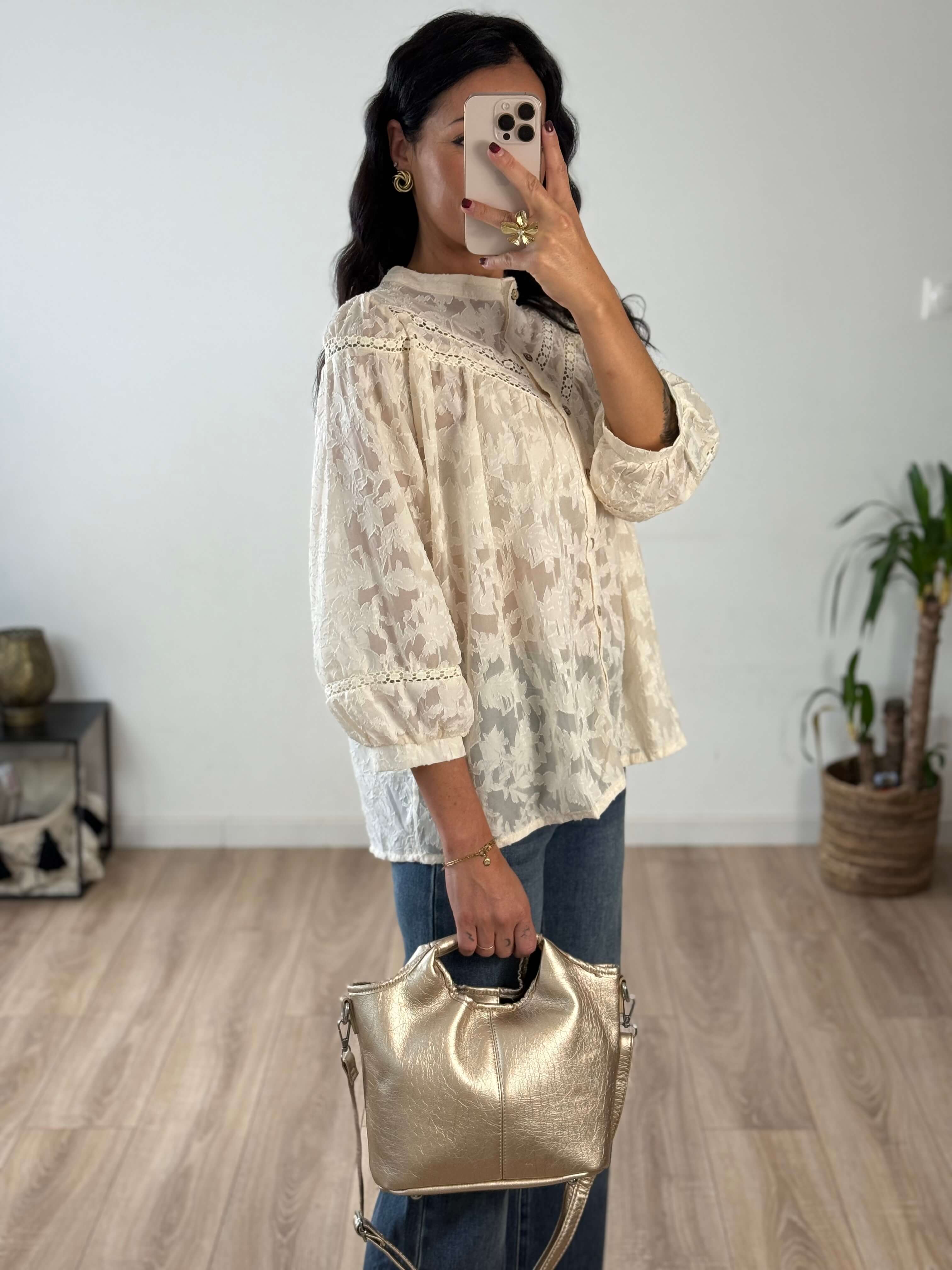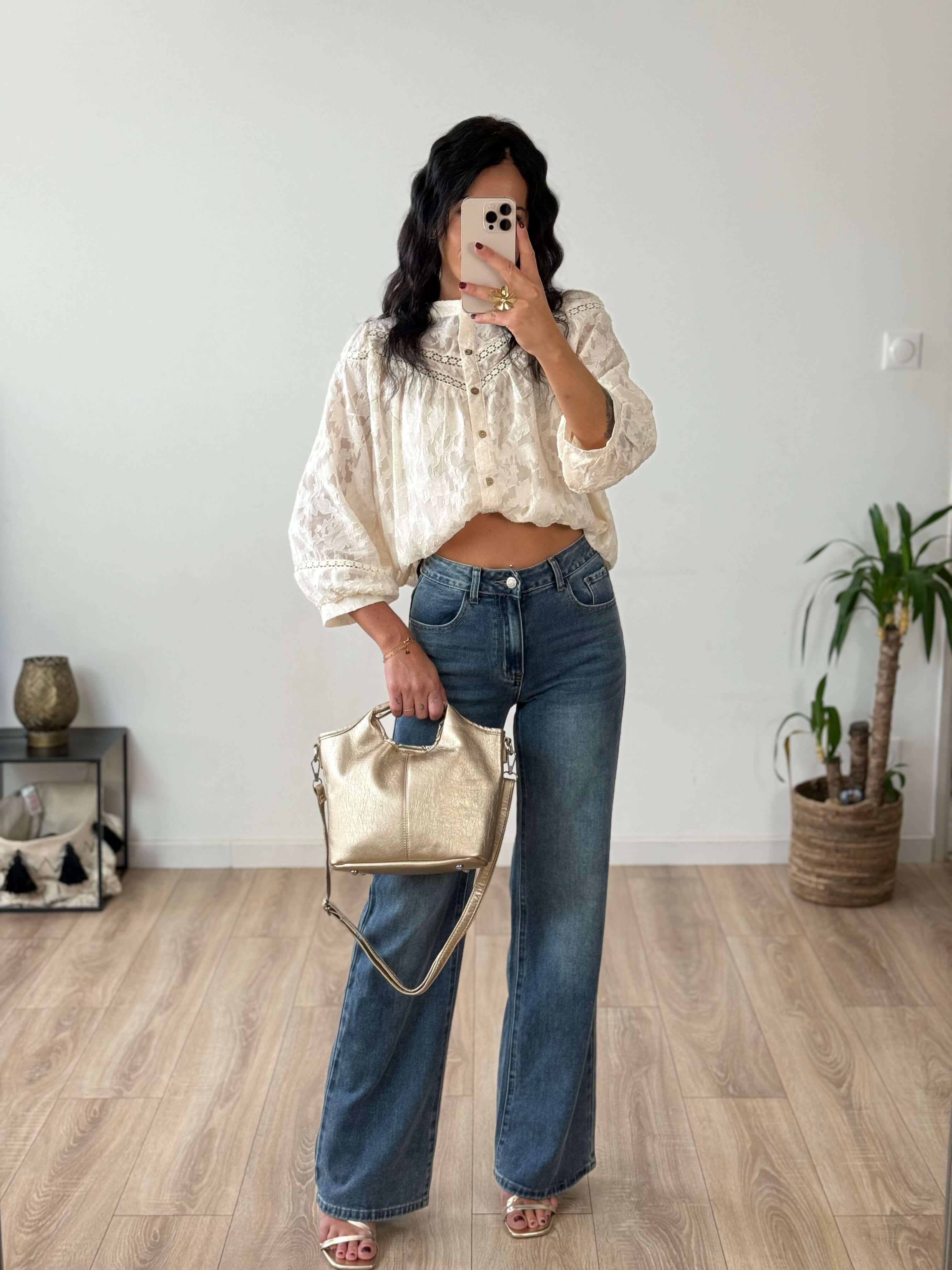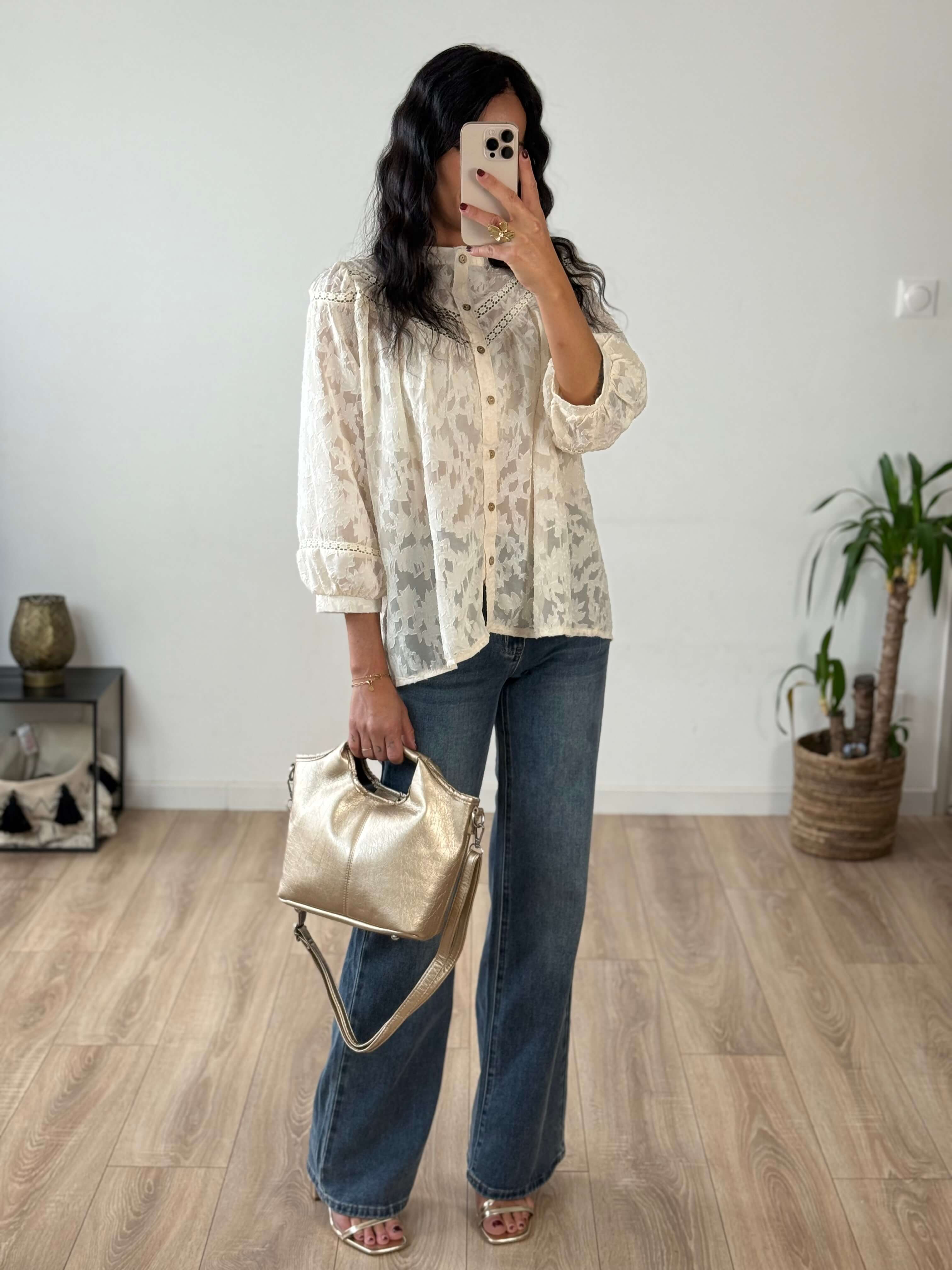 Un souffle de poésie dans vos looks.Ce chemisier délicat à la dentelle florale et au col haut ajouré est une pièce pleine de charme. Fluide, léger et raffiné, il donne immédiatement une allure féminine et bohème. Idéal à porter rentré dans un jean taille haute, ou ouvert sur un débardeur, c’est la touche chic qu’on adore à la rentrée.
